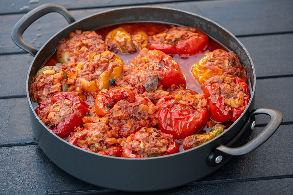 Stuffed peppers are a classic dish of Ukrainian cuisine. They are especially popular in the south of the country, where peppers are sweet and fleshy, and where in summer and autumn tomatoes, eggplants, zucchini, herbs, and other vegetables are abundant. Not only peppers are stuffed: tomatoes, zucchini, and eggplants—commonly referred...
