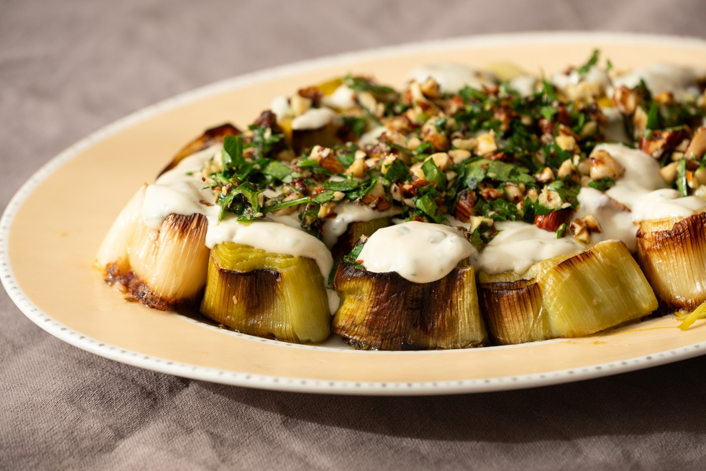 Roasted Leeks with Yogurt and Hazelnuts